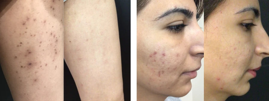 4-6 Weeks of Treatment using the Exfoliation Trio for Keratosis Pilaris, scarring, clogged pores, and uneven texture.
